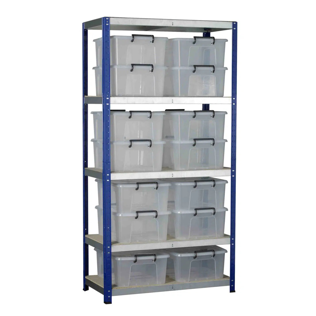 Eco-Rax Shelving comes with five chipboard shelves as standard. Adapt the shelving with the addition of plastic storage bins, boxes and containers.