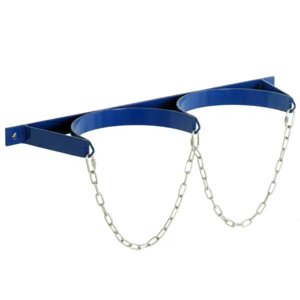 The cylinder racks come with steel link retention chains to hold cylinders in place, they are also supplied with pre-drilled fixing holes but do not come with the fixings. This rack must be fixed to the wall at a height of at least two-thirds of the cylinder height.