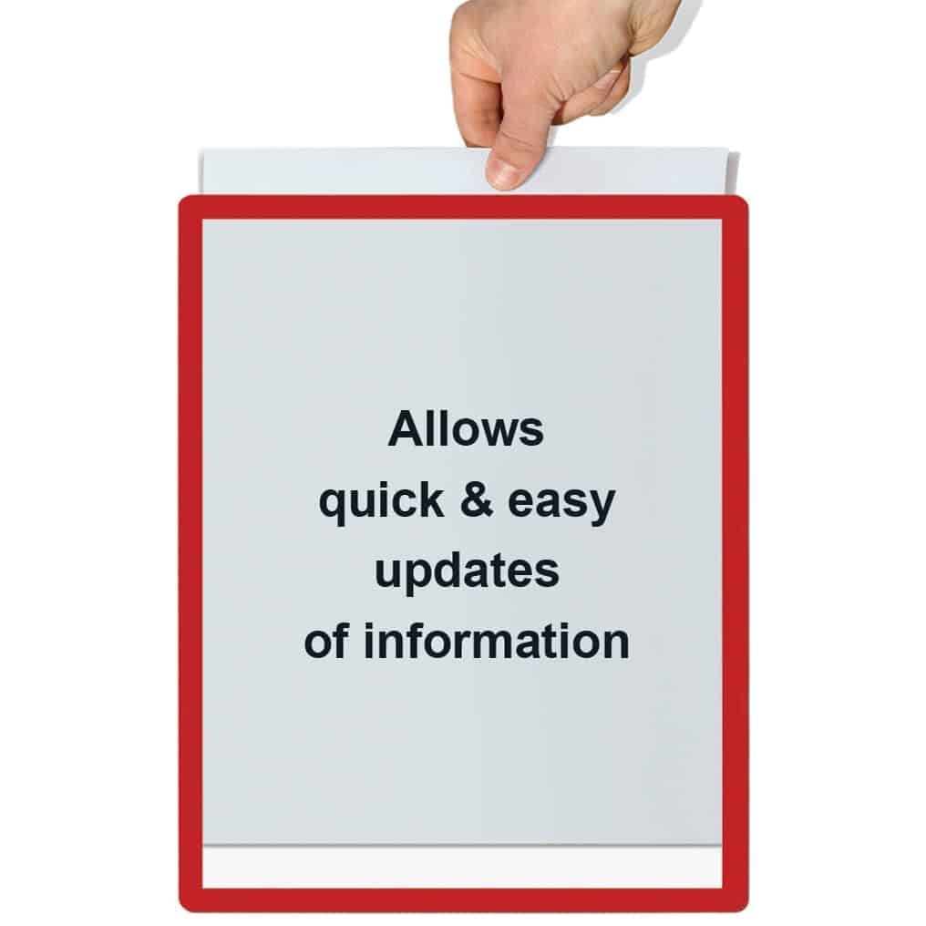 This unique range of colour coded frames are designed for easy and prominent document display. The frames are a great way to display literature, certificates and information in bright colours. Documents can be quickly and easily changed over thanks to the useful design of the frames.