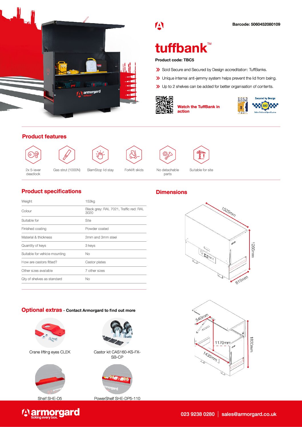 Armorgard TuffBank TBC5 Site Chest Data Sheet