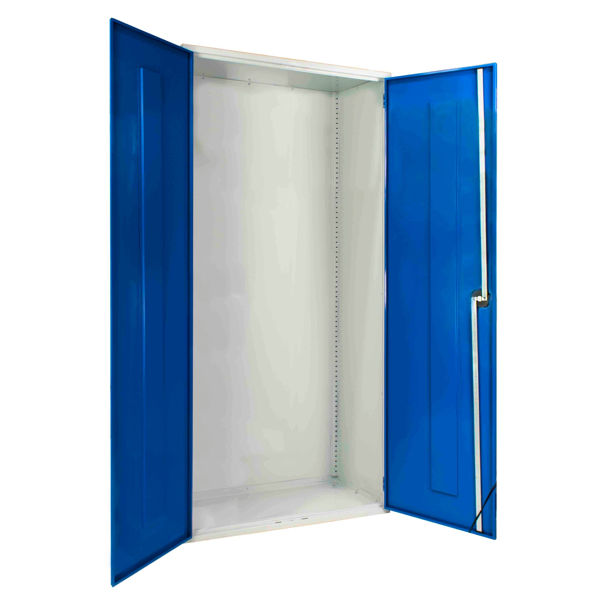 Constructed from durable steel, the cabinet features an epoxy powder-coated silver/grey carcass with contrasting blue doors for a professional finish.