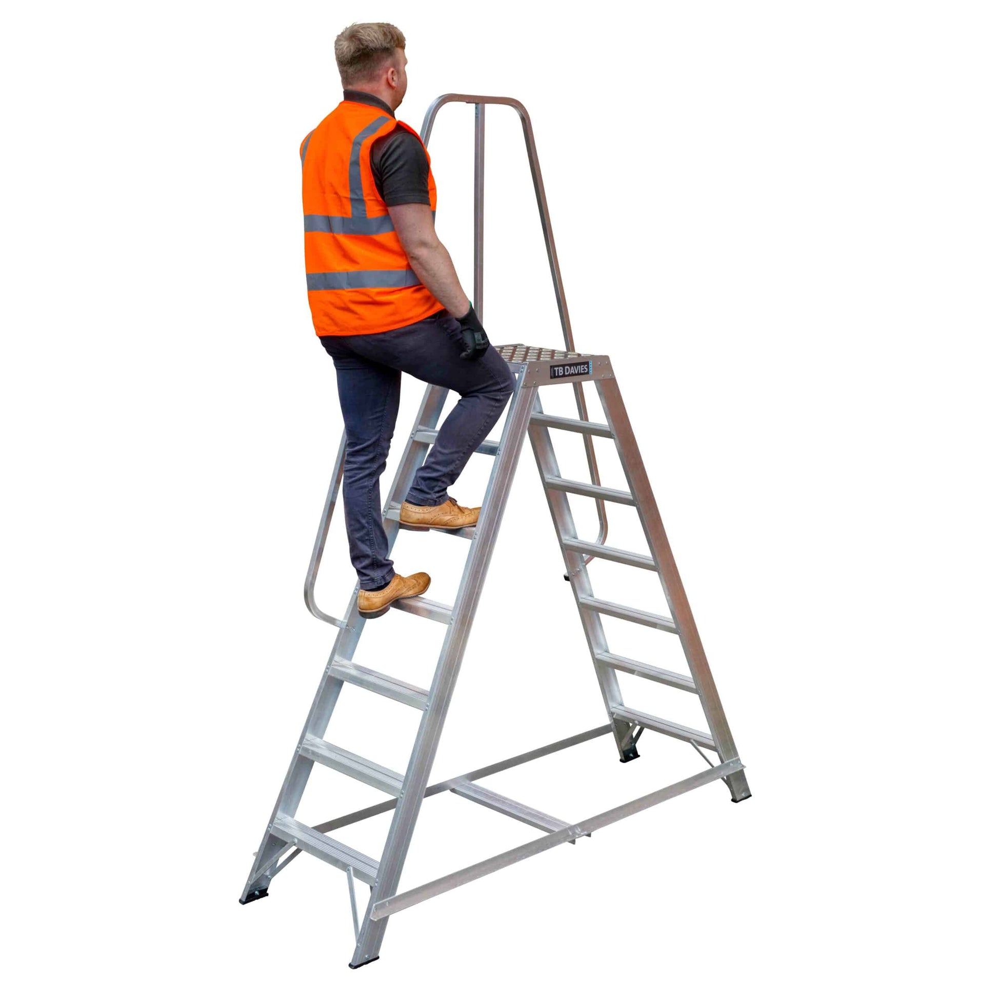 These heavy-duty double sided machine steps have 7 treads on either side of the unit.