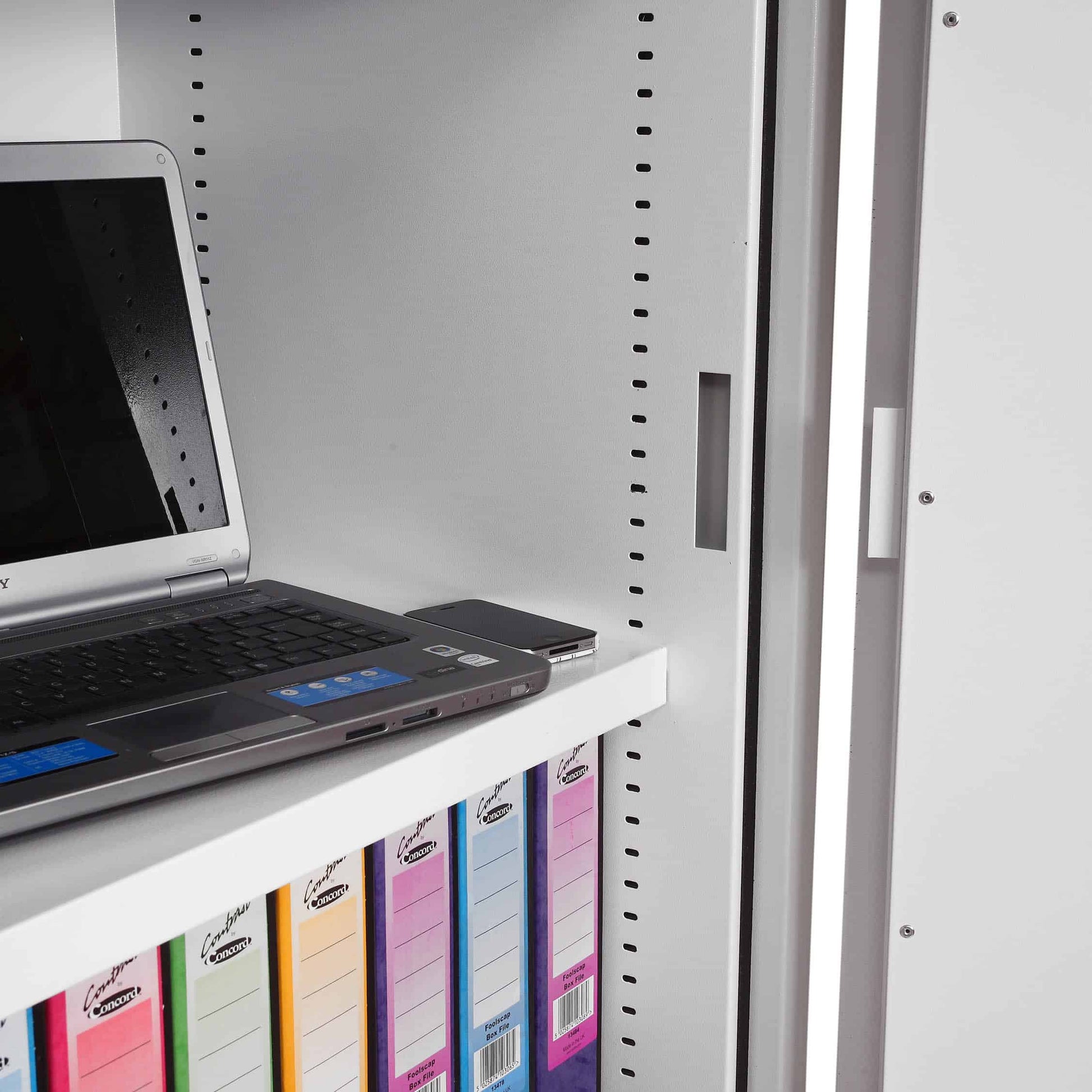 The safe comes with height adjustable shelves with hanging rails for lateral files and provides 30 minutes fire protection for paper records at 500°C. Safe supplied with an advanced high security electronic lock with clear LED display, dual control, hidden code and scrambled code that can be programmed as standard.