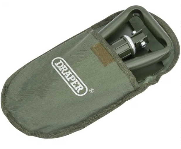 This snow shovel comes in green and has a powder coated finish to prevent the shovel from corrosion. The handle is has an integral collet which tightens the handle when it is unfolded, meaning there is no need for additional tools. The shovel comes with a vinyl pouch for storing it when it’s not in use, it will easily fit in to a car boot without taking up too much space.