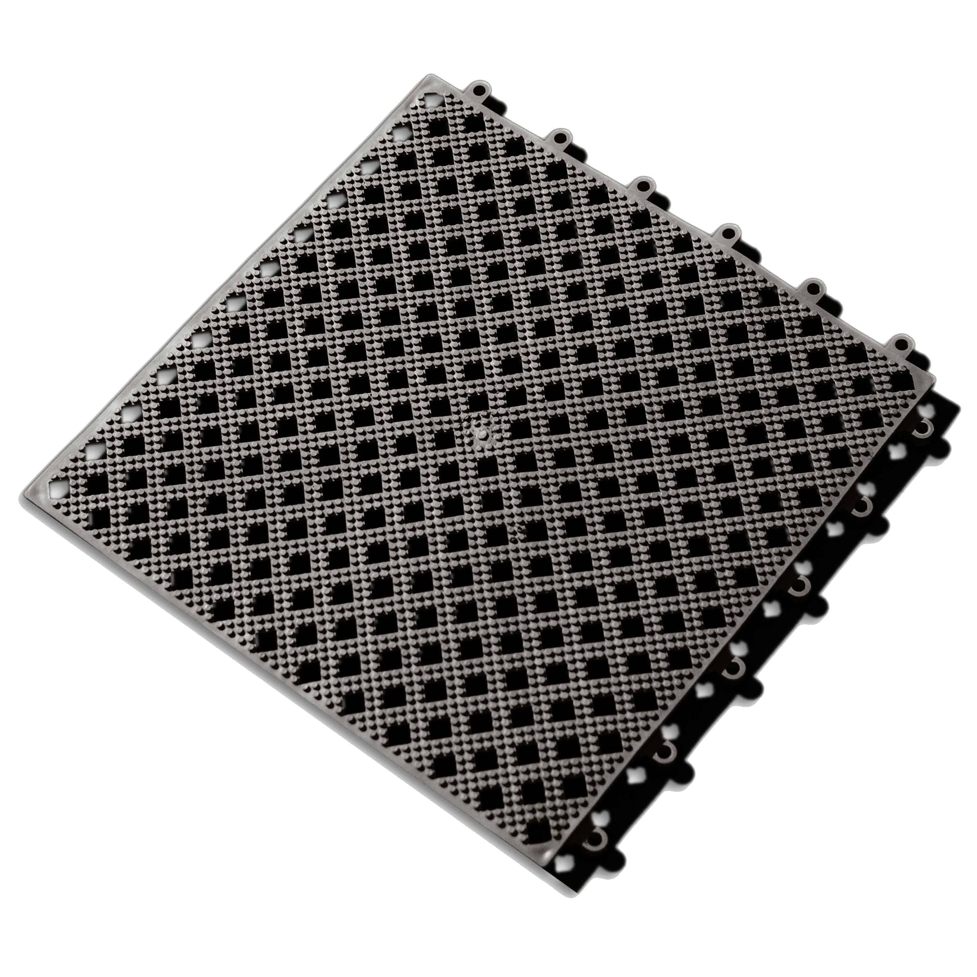This versatile interlocking matting system has a free flowing four way drainage design, and a high grip pattern which makes it effective in wet, oily and greasy environments.