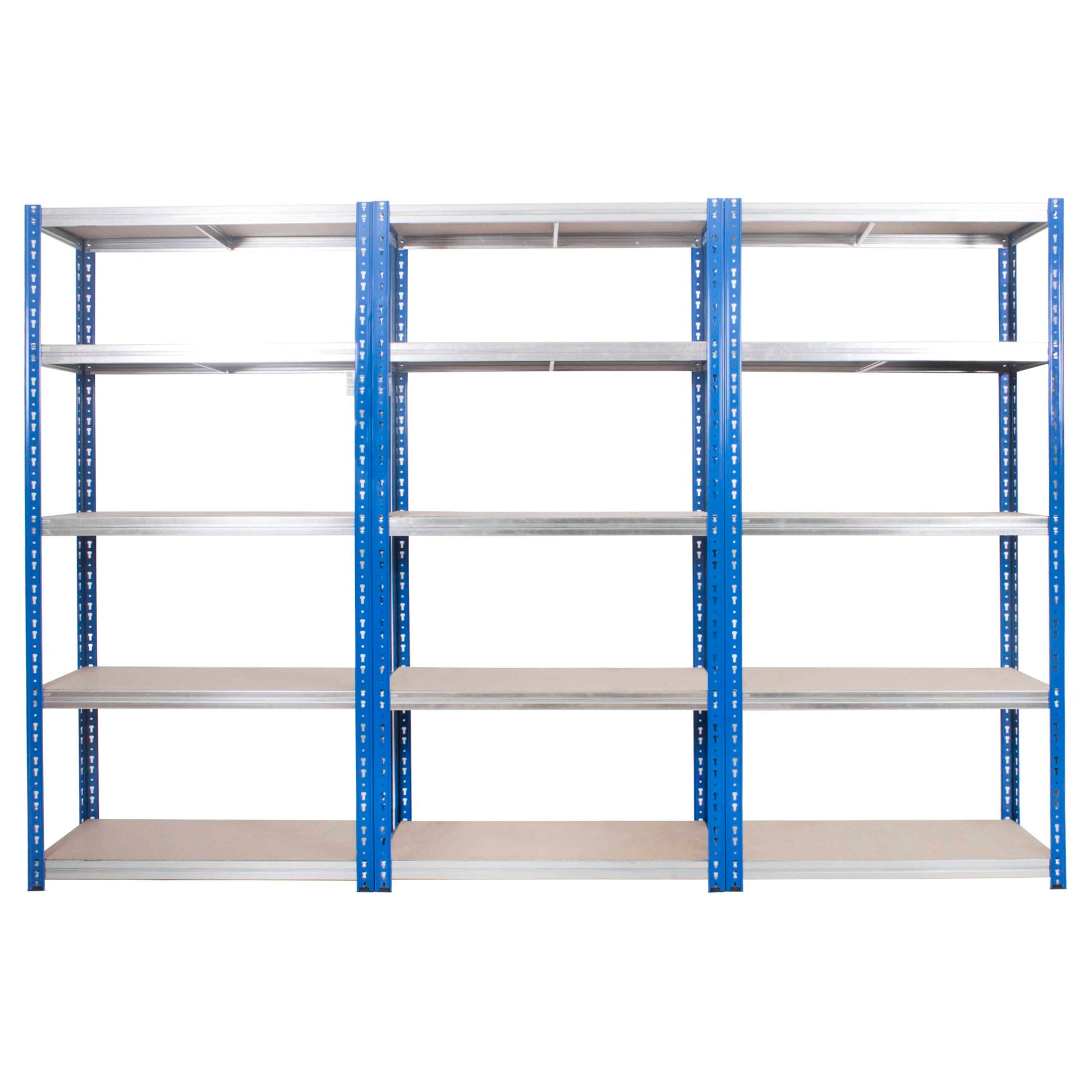Kwickrack shelving comes with five chipboard shelves that are 12mm thick and blue/grey frames. The shelving has a unique 6 fold channel beam offers shelf capacities of 200kgs with a shelf height of only 54mm. The design of the beam allows for an inset chipboard decking design with interlocking deck supports for a strong and robust shelf level.