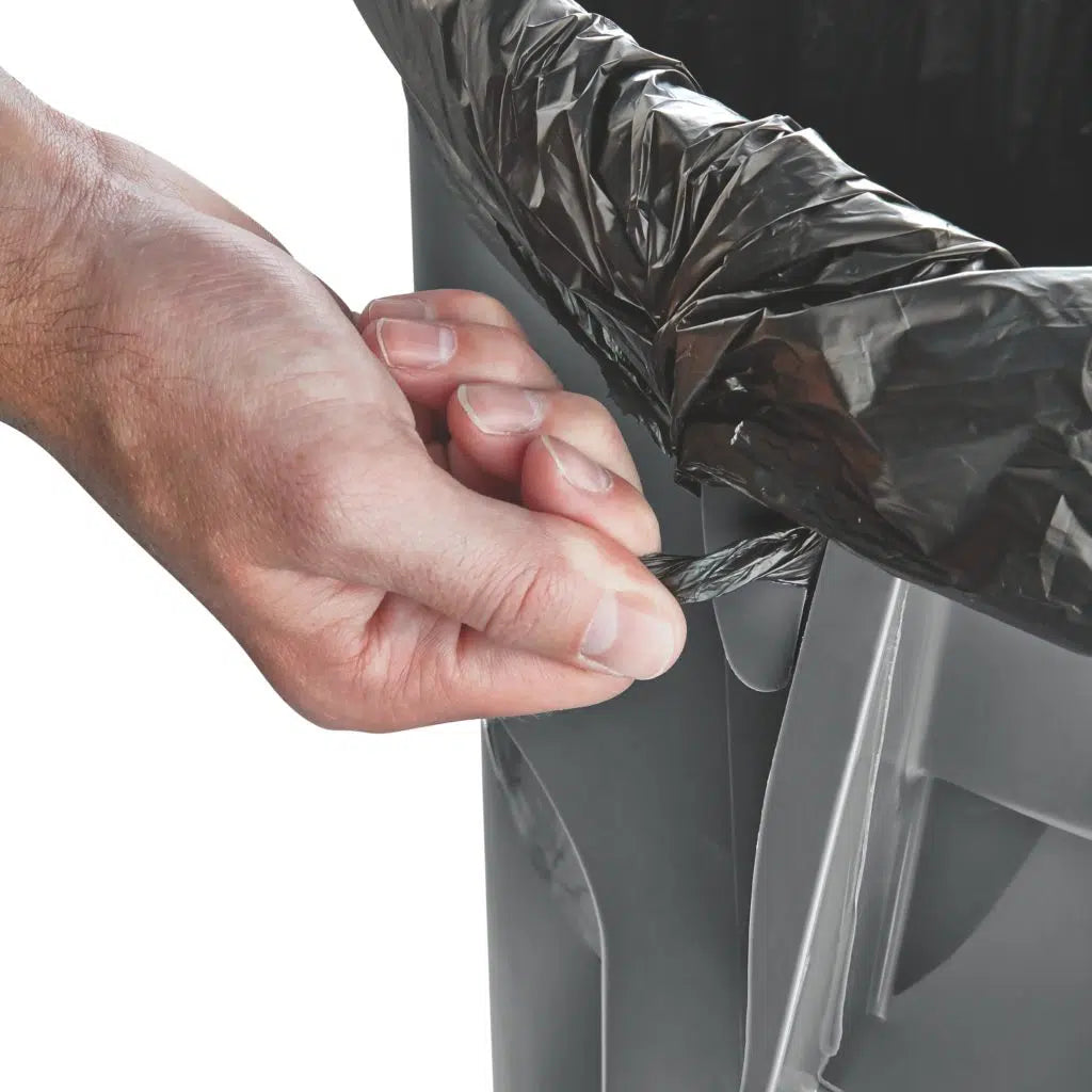 The bin features integrated venting channels that allow for air flow around and below the bag making for low force liner removal reducing the force required by up to 50%, protecting workers from risk of injury. Liner cinches prevent liners from falling into the bin eliminating any need to tie knots.