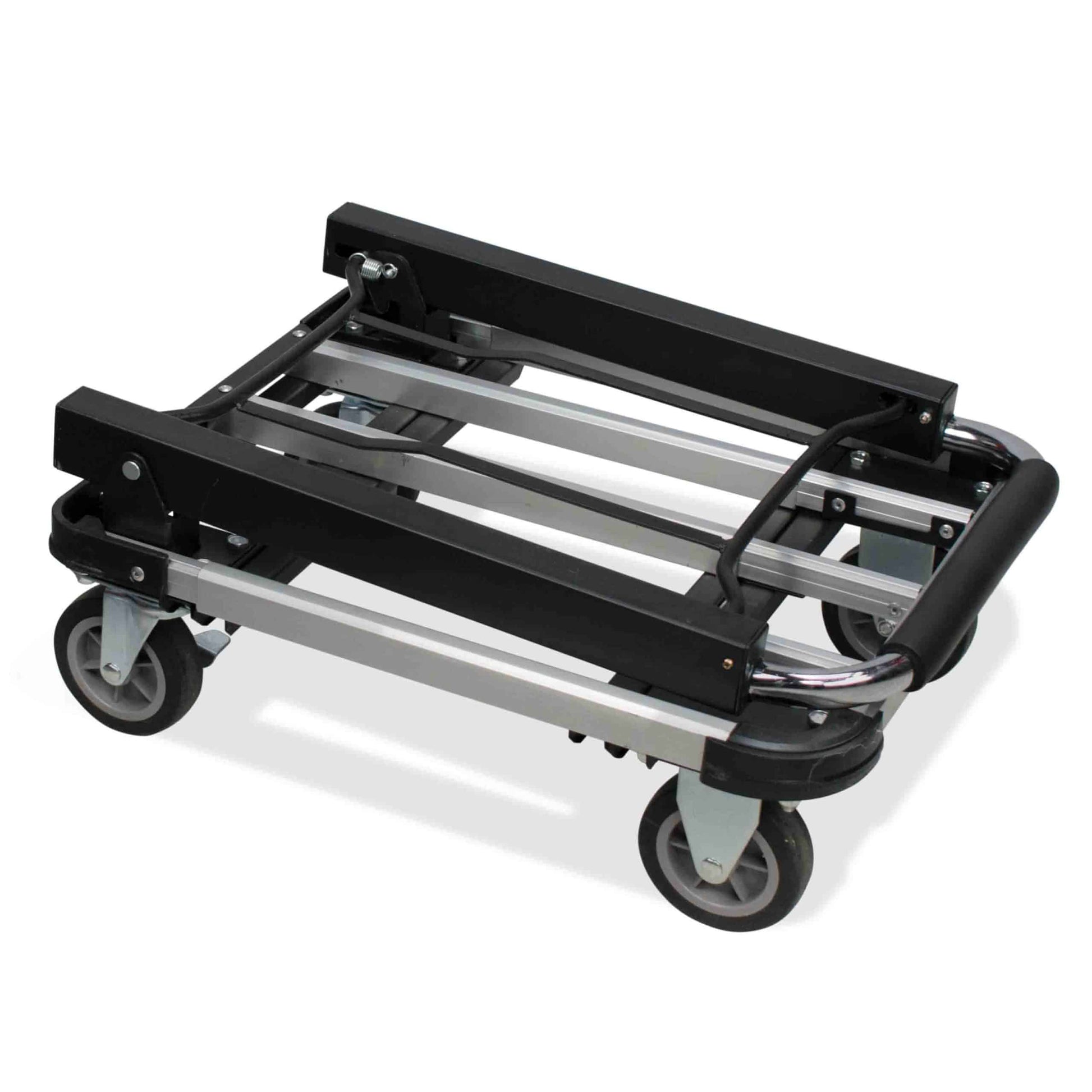 The trolley comes with a telescopic handle that can be raised and lowered to suit the operators height. It is also comes with moulded plastic corner bumpers for added protection, as well as two fixed and two swivel braked rubber cushion wheels. When not in use, the trolley will collapse for easy storage.