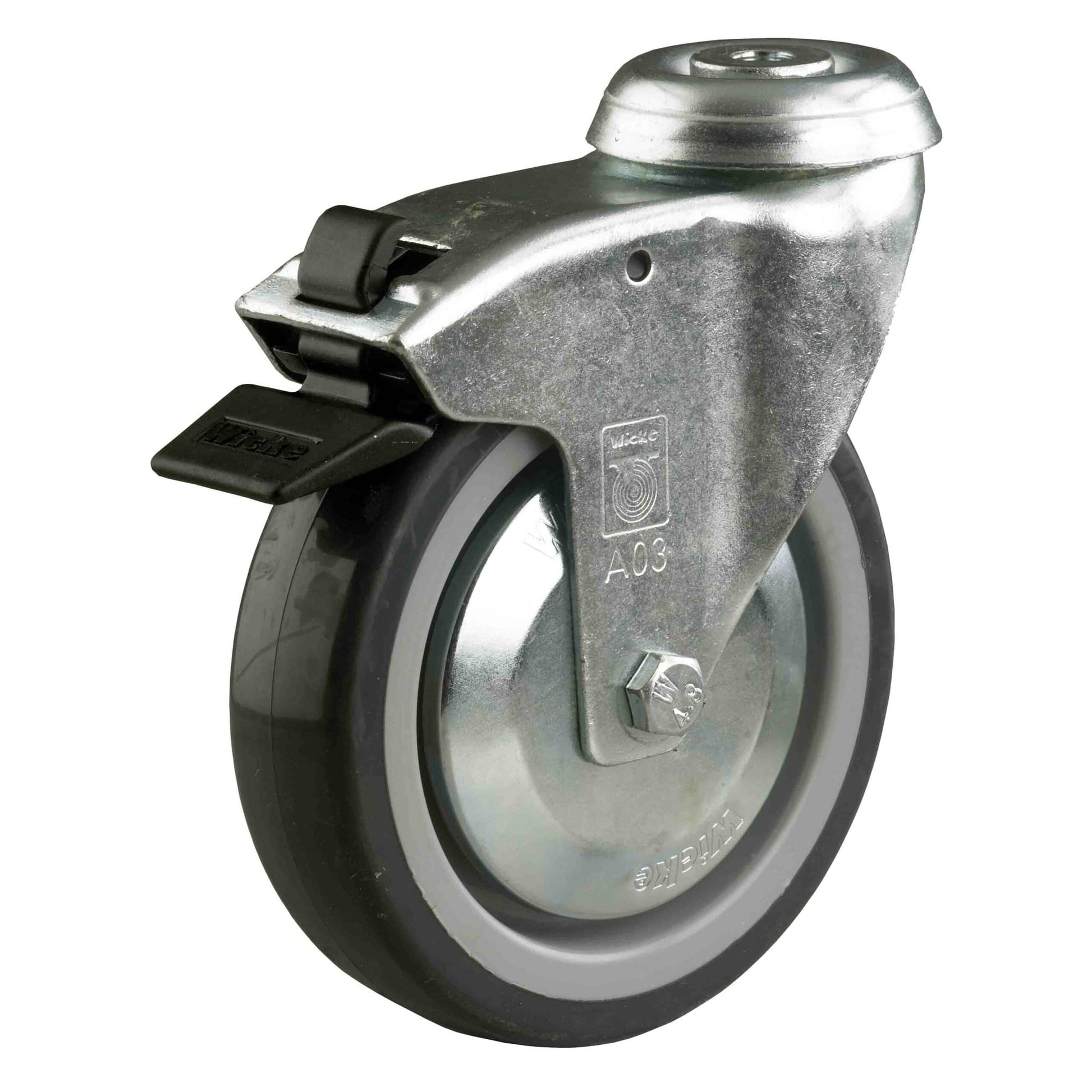 The trolleys are fitted with 125mm diameter stem fitting castors with grey non marking tyres and thread guards. The trolleys are available with 2 swivel and 2 braked castors or 4 pneumatic tyres as optional extras.
